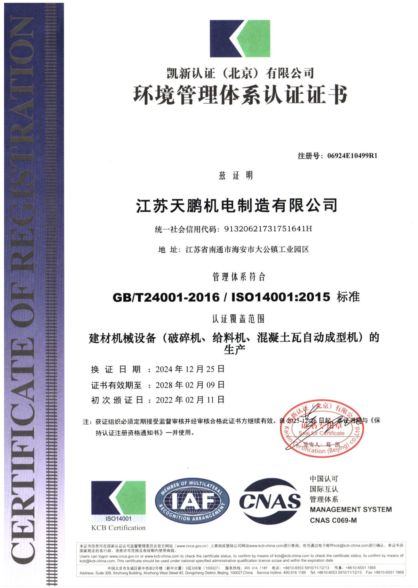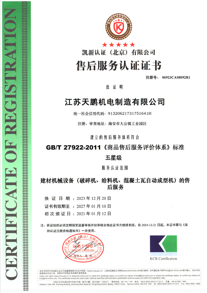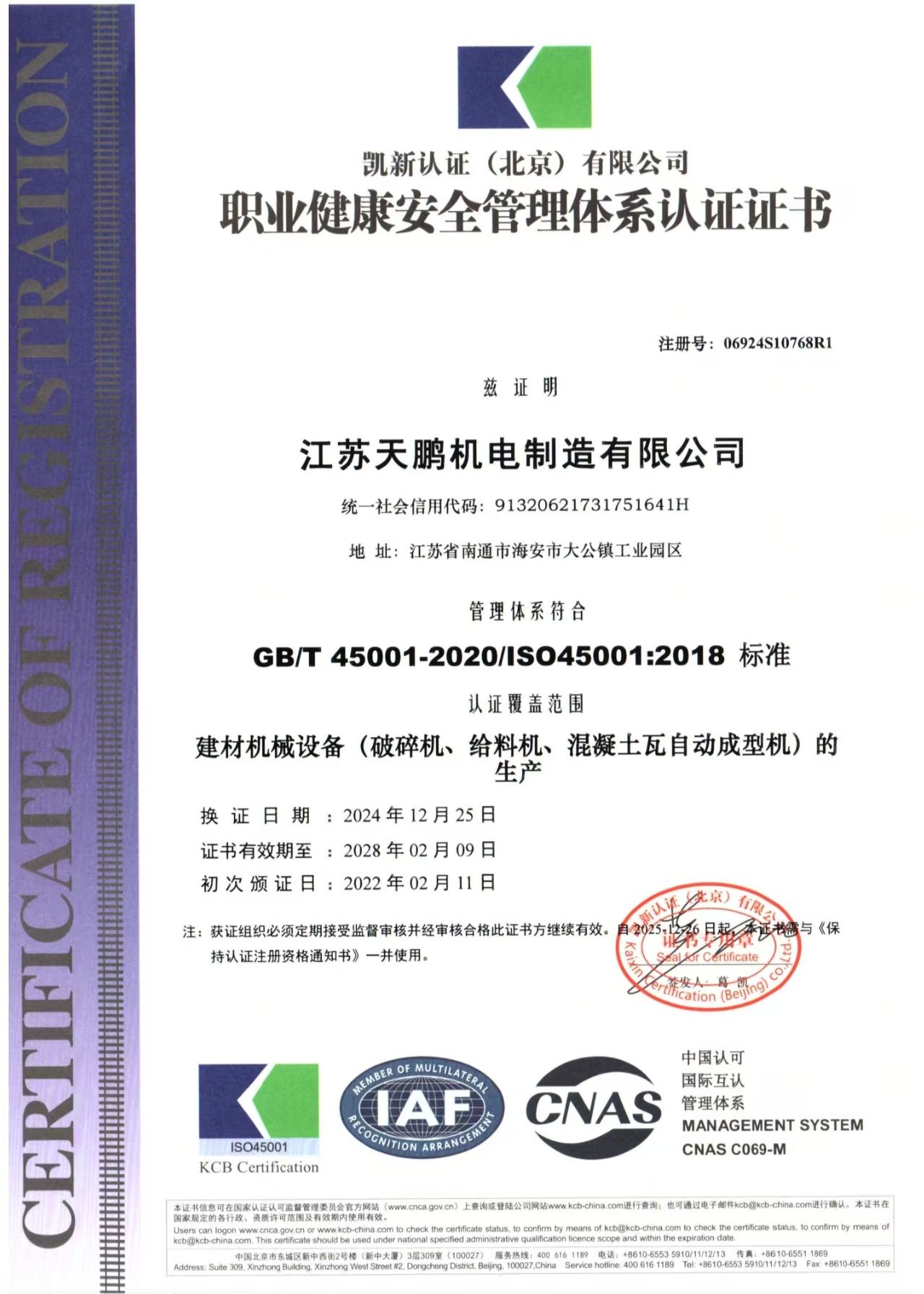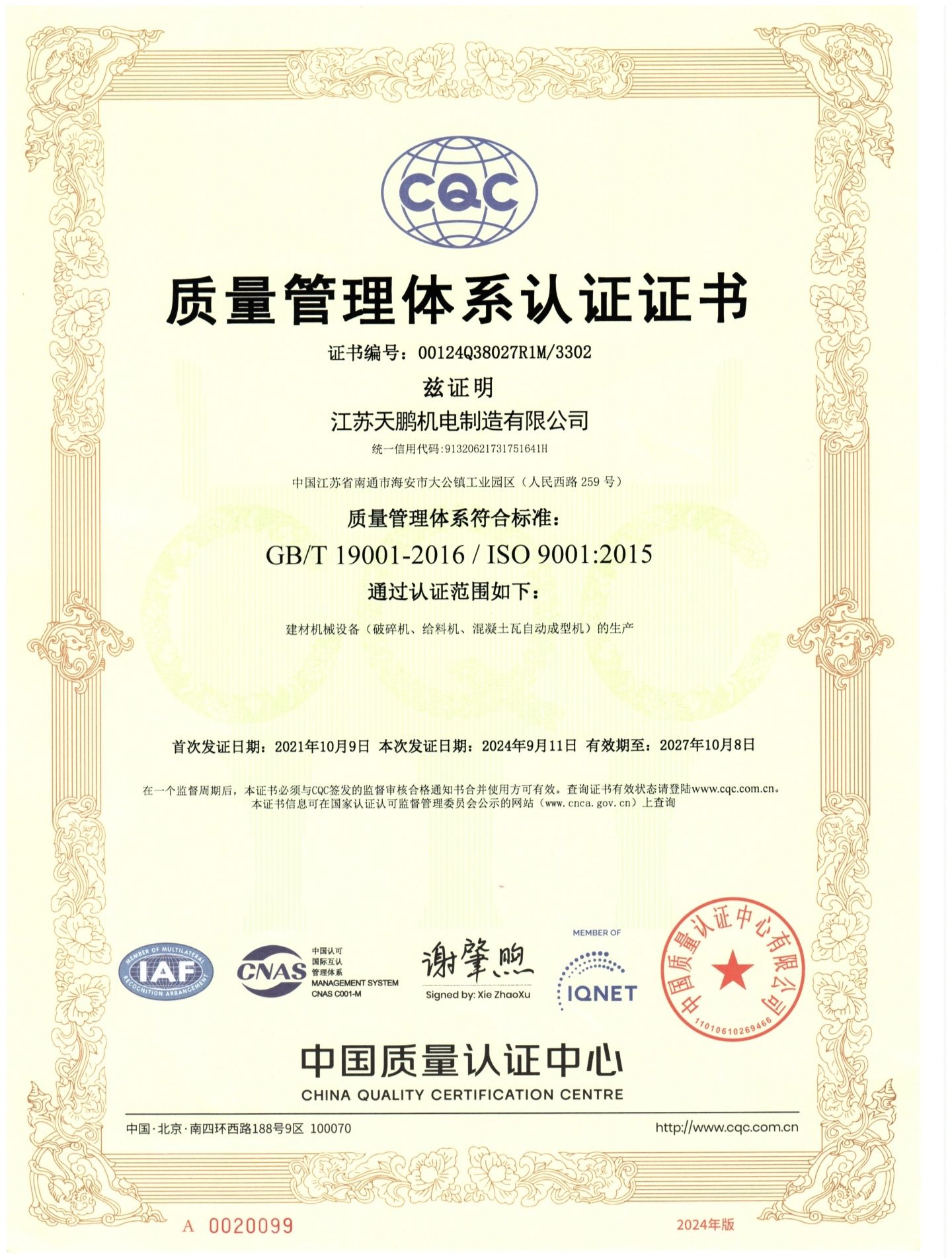 江苏天鹏机电制造有限公司是一家集设计、制造、销售于一体的江苏省高新技术企业,公司占地面积3万平方米,建筑面积近1.5万平方米,现有员工155人,其中大专以上学历的科技人员有60人。公司成立了研发中心,该中心为南通市级工程技术中心,专职从事产品开发技术人员20人,其中高级工程师6人。公司拥有计算机辅助设计(CAD)、计算机辅助制造(CAM)、加工中心等加工设备。检测手段齐全。主要产品有:水泥彩瓦成套装备、破碎筛分输送等新型建材设备,所生产的设备都通过了科学技术鉴定。设备节能高效、自动化程度高,使用寿命长,已广泛应用于冶金、电力、建材、化工等工业部门。产品不但*全国各地,还远销马来西亚、越南、缅甸、老挝、孟加拉、埃及、赞比亚、安哥拉等国家和地区,得到了国内外广大用户的一致好评。历年来,企业被评为江苏省重合同守信用单位;省高新技术企业;省三A资信等级;通过ISO9001-2008质量体系认证评审;混凝土瓦自动成型机获得江苏省新产品称号。
